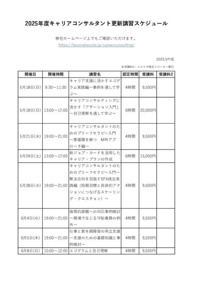 2025年度更新講習スケジュール一覧表
