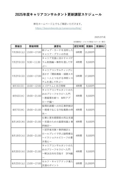 2025年度更新講習スケジュール一覧表8-9月