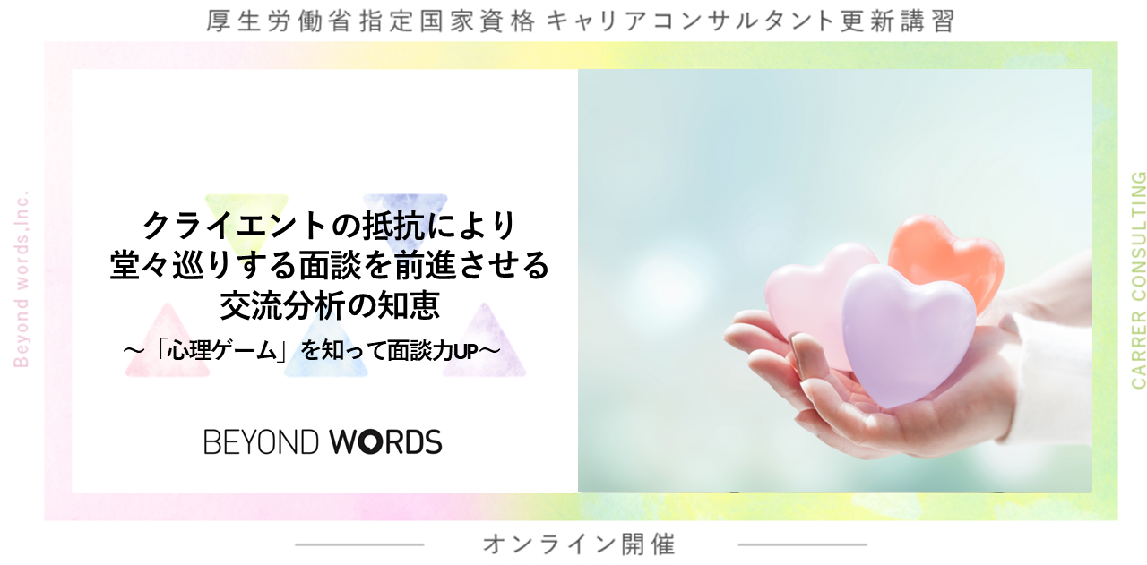 【12/20オンライン開催】キャリアコンサルタント更新講習 クライエントの抵抗により堂々巡りする面談を前進させる交流分析の知恵~「心理ゲーム」を知って面談力UP~